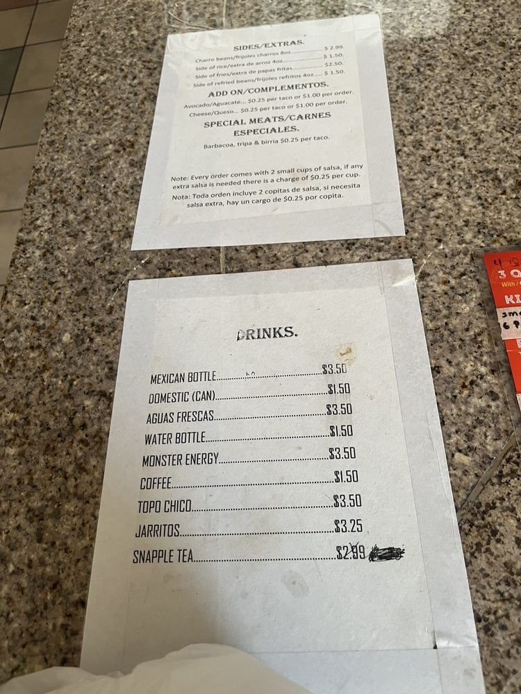 Served with onion cilantro and jalapenos included 3 tortillas.